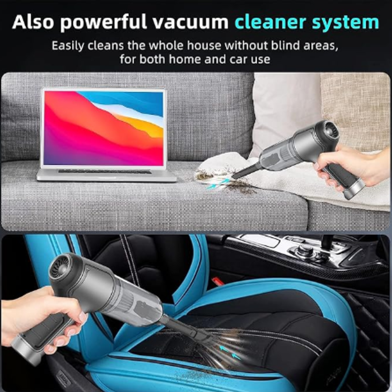3-in-1 Multi-functional Mini Car Vacuum Cleaner: comes with a variety of accessories to meet the blowing, vacuuming, pumping and other scenarios of use. It can be used for home/office/car/bathroom/carpet/keyboard/computer mainframe vacuum cleaning; it can be used as an inflatable pump to inflate a swimming ring or as a dust buster; it can be used as a vacuum pump for clothes, mattresses, quilts, pillows.